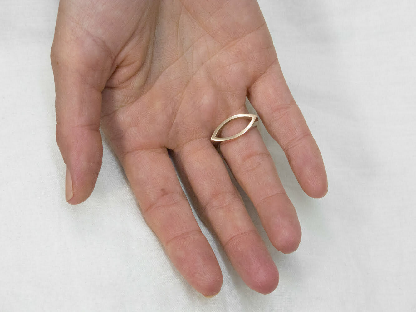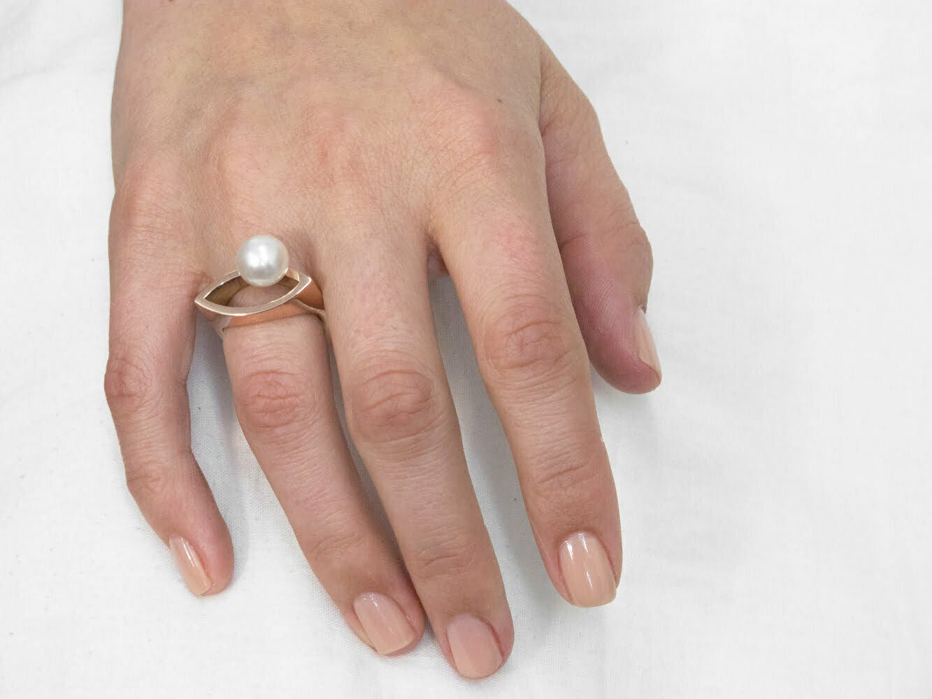 The Marquise Ring in rose gold sculpts a bold, dimensional marquise-inspired form with an off-center black button pearl (8–9mm) for striking asymmetrical allure.